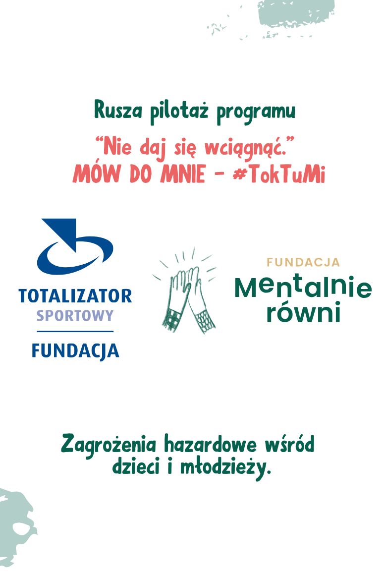 Program Mów Do Mnie - #TokTuMi realizowany jest przez Fundację Mentalnie Równi, której celem statutowym jest ochrona zdrowia psychicznego, szczególnie dzieci i młodzieży, a także przeciwdziałanie wszelkim formom wykluczenia społecznego. Zespół Fundacji tworzą psycholodzy, pedagodzy, dydaktycy i młodzi ludzie pełni pasji.